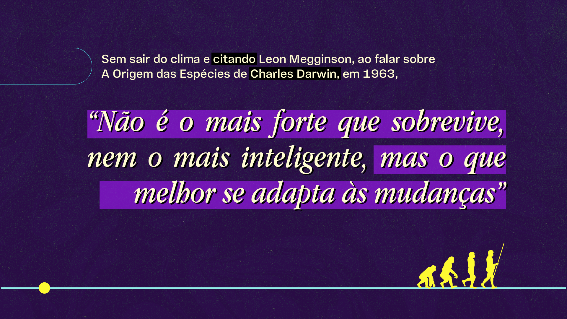 A natureza é o sistema mais tradicional do mundo e ao mesmo tempo o mais inovador. Desde o primeiro dia de vida na terra as espécies não pararam de evoluir. E assim como a nossa espécie evoluiu, a maneira de fazer negócios também mudou muito desde Charles Darwin escreveu A Origem das Espécies. Na comunicação do evento, buscamos conciliar esse papo de biólogos com o maior evento empresarial da região em uma identidade, assim como suas aplicações e desdobramentos que foram vistos e experiênciados por mais de 1300 pessoas ao longo do evento.